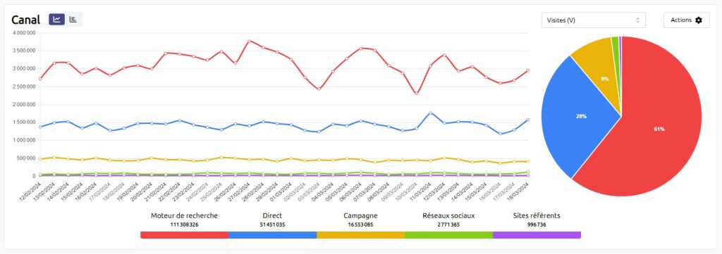 - Analyse quantitative : vous allez pouvoir connaître le nombre de pages vues, de visites et de visiteurs du site.